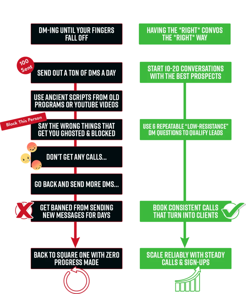 Where instead of sending out tons and tons of DMs a day… praying SOMEONE will message you back enough to get them onto a call…